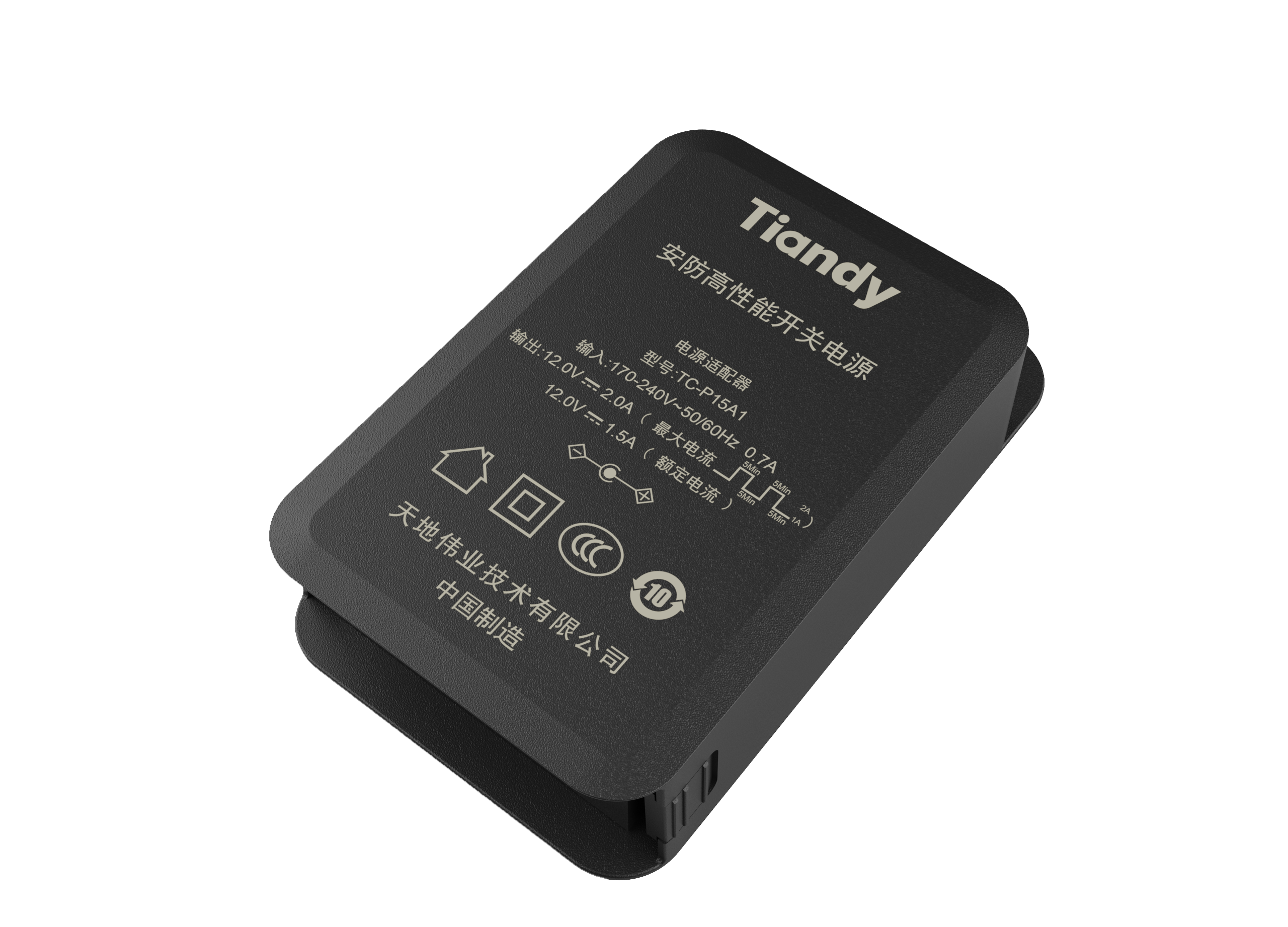 交流电压输入稳压开关电源,适用于DC12V供电摄像机壁挂式安装,支持防水外壳设计,可用于室内、室外场合,内置藏线盒功能AC170V~240V输入,DC12V输出,输出电流额定1.5A,最大2A温度0℃-40℃,湿度10%~90%(无凝结)3级B浪涌、3级B静电防护等级
