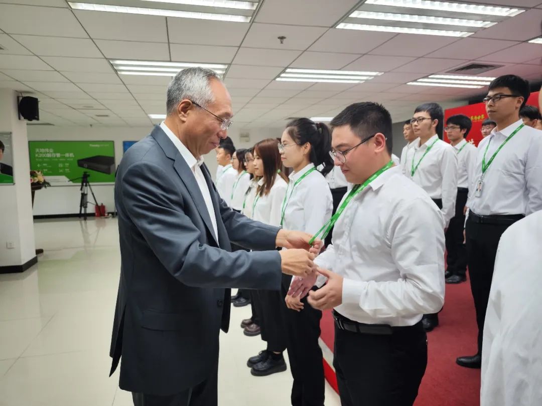 首先迎来的是授牌环节,公司领导为各位应届生授予象征着身份与荣耀的正式工牌。