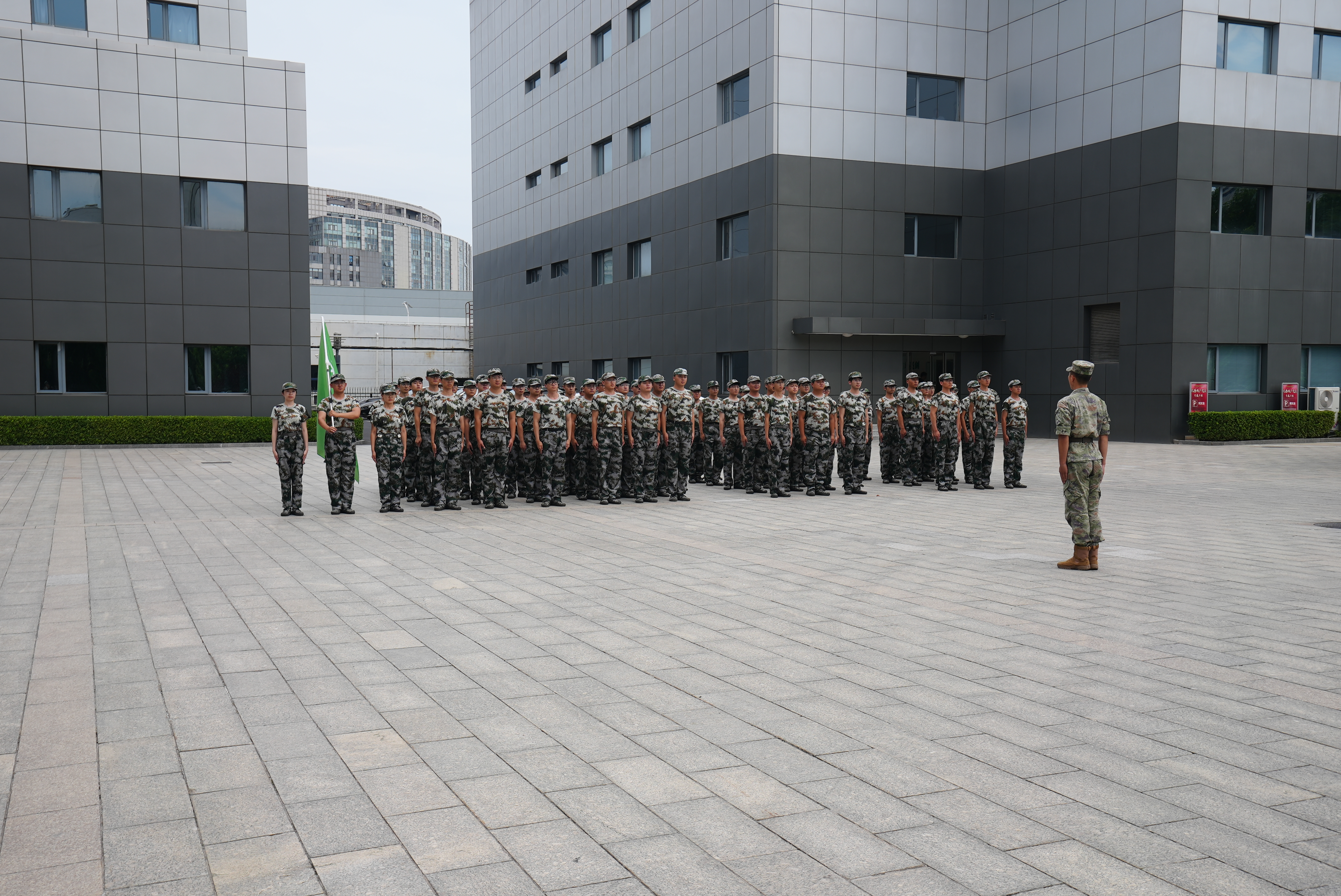 7月19日下午,天地伟业总部园区,高昂的呐喊声与整齐的踏步声响彻云霄,一场展现新生代力量蜕变与钢铁意志的军训汇演在这里震撼上演。